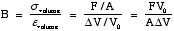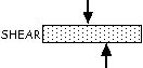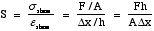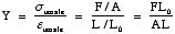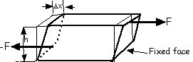 •STRAIN Strain (ε) is the measure of deformation in a given material. The quantification of strain is referred to as TENSILE STRAIN which is the ratio of a change in length (ΔL) to the original length ( LO ). ε = Δ L / LO Shear strain is the ratio of the change in horizontal distance / height. (ε = Δx/h) , as diagramed below. •MODULI The ratio of stress to strain creates a modulus. For example, tensile stress to tensile strain is termed YOUNG'S MODULUS (Y) or ELASTIC MODULUS. This quantity is used to characterize a material under either tension or compression and only depends on the material itself. In equation form: Y is measured in PASCALS (Pa) and is a constant for a given material. example values: Iron = 100 x 109 N/m2 Nylon = 5 x 109 N/m2 An additional deformation may occur when equal and opposite forces are applied across an objects opposite faces. This shear stress produces it own proportionality constant referred to as SHEAR MODULUS. We define the Shear Modulus as the shear stress divided by the shear strain. Shear Modulus (S) is measured in Pascals (Pa). example : Iron = 40 x 109 N/m2 One final deformation involves the compression of an object by applying force at right angles to all of its faces. These forces now generate VOLUME STRESS and VOLUME STRAIN, the ratio of change in volume to the original volume. This new ratio is defined as BULK MODULUS (B) . Where: Bulk Modulus (B) is also measured in Pascals (Pa). example: Iron = 90 x 109 N/m2 Several additional concepts that support the study of stress and strain are listed below. FRACTURE - the amount of stress (tensional, compressional, or shear) on a solid that will produce breakage of that object. ELASTIC LIMIT - the point where a solid will return to its original shape under a given applied force. HOOKE’S LAW - when strain is proportional to stress a material will obey this law. PLASTIC REGION - an object enters this region when the material does not return to its original shape when an applied force is removed. DUCTILITY - when a material is drawn out in tension without fracturing. Ductile materials are strong and plastic. MALLEABILITY - permanently extending an object in all directions without fracture by hammering or pressing. Materials must be plastic, but not so dependent on strength. TOUGHNESS - the amount of energy that a material can absorb before it fractures. BRITTLENESS - a material that breaks with little permanent distortion. It lacks toughness and ductility. HARDNESS - the resistance to wear or indentation of a material. II. Experimental Component EXPERIMENT #1 Tensile Strength of rubber band Record the thickness ______ (mm) and length _______ (mm) of the specimen. Attach a mass to the rubber band to stretch it. Measure the length. Calculate the weight of the mass hanging on the rubber band. Add mass in small steps repeating the previous step each time. Continue this until the rubber band breaks. Graph stress vs strain EXPERIMENT #2 Tensile Test of an Aluminum Cylinder. • Make measurements of the aluminum sample recording each of the characteristics. • Mount the sample in the tensile testing machine. Insert one end into the load cell and the other end in the moving crosshead. (fig. 1) • Setup the extensometer to measure the sample elongation. • CAUTION !! Close the protective shield door before applying any force to the sample. • Apply force slowly and record the values from the force gauge and the extensometer until fracture of the sample occurs. • Calculate the tensile stress and tensile strain. Calculate Young’s modulus. • If sufficient readings were obtained, graph stress versus strain and identify the salient features of this characteristic curve. EXPERIMENT #3 Compression Test of a Concrete sample. • Using the pre-made concrete sample provided determine its outer dimensions and mass. Also calculate the volume and density of the sample. • Place the sample in the compression tester. WEAR PROTECTIVE EYEGLASSES! • Close the bleeder valve on the hydraulic pump. • Lower the hydraulic cylinder, using the pump handle, until contact with the sample is made. (ensure that contact areas above and below the sample completely cover the samples surface) • Continue to apply pressure to the sample until fracture occurs. At the point of fracture make note of the pressure reading on the pump gauge. (requires two people) • Compute the compressive stress on the sample at maximum pressure. (hint - remember you are reading pressure in pounds per square inch (psi) and you must convert to metric force per unit area) • Computing the compressive strain for a concrete sample is difficult to do accurately. State why this is so. • Compute the force acting on the concrete sample.